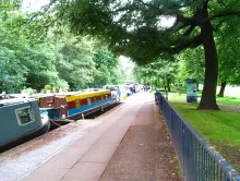 Photos: (1st) Weavers' Triangle on the Leeds and Liverpool at Burnley - one of the quietest canals with few CCers, (2nd) Merry Hill in the Black Country - plenty of moorings and no clash between liveaboard and holiday boaters, (3rd) Marina Moorings in Worcester. The IWA's boaters predominantly have nmoorings, (4th) The Regents Canal in London - favourite haunt of liveaboard CCers in the capital, (5th) Plenty of space at Victoria Park in East London.