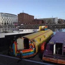 The privately owned wide-beam boats, which have been adapted to look like a sinking Titanic, the Yellow Submarine of Beatles fame and The Joker's lair have been a feature of Salthouse dock for many years and are some of the most photographed vessels in the Albert Dock complex.