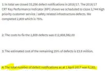 At the time the previous article was published, an accurate figure for 2017 outstanding defects was not available due to C&RT attempting to fudge the numbers. We made a conservative estimate of 65,000 but this has proven rather too conservative with C&RT now admitting that 'SAP ZX Defect Notifications' outstanding at 1 April 2017 are 72,026.