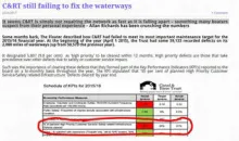 The Trust has given the number of outstanding defects at 1 April 2016 as 62,397 and and a revised figure for 1 April 2017 as 72,026. That's a increase of about 10,000 or 15 per cent in 12 months. Put another way, the Trust now has 36 defects for each mile of waterway.
