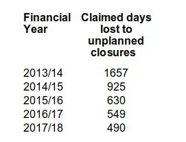 As can be seen, C&RT's claim that the situation regarding emergency closures (aka unplanned or unscheduled closures) has improved since it was formed is completely untrue. In fact, 'days lost to closure' has increased.