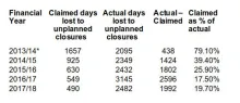 On the right are the unplanned closure days figures on which C&RT is basing its claim -