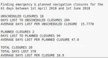 Allan Richards program has been run against C&RT's stoppages database for April and May producing the results below. Actual days lost to unscheduled closures is 284 with a further 94 days lost to planned closures. Compare that with C&RT's figure of 123 days lost!