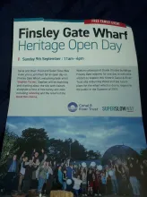 Photos: (1st) Finsley Gate Wharf pictured over the festival weekend - no builders in sight, (2nd) Finsley Gate Wharf showing the slipway Colin Ogden could have used to launch Whimbrel, (3rd) Whimbrell on its trailer. Colin Ogden restored the Lakes Taxi completely, (4th) The Open Day planned for Finsley Gate Wharf just two weeks after the Canal Festival, (5th) Colin Ogden.