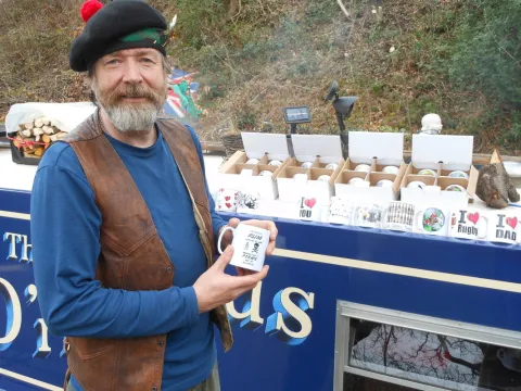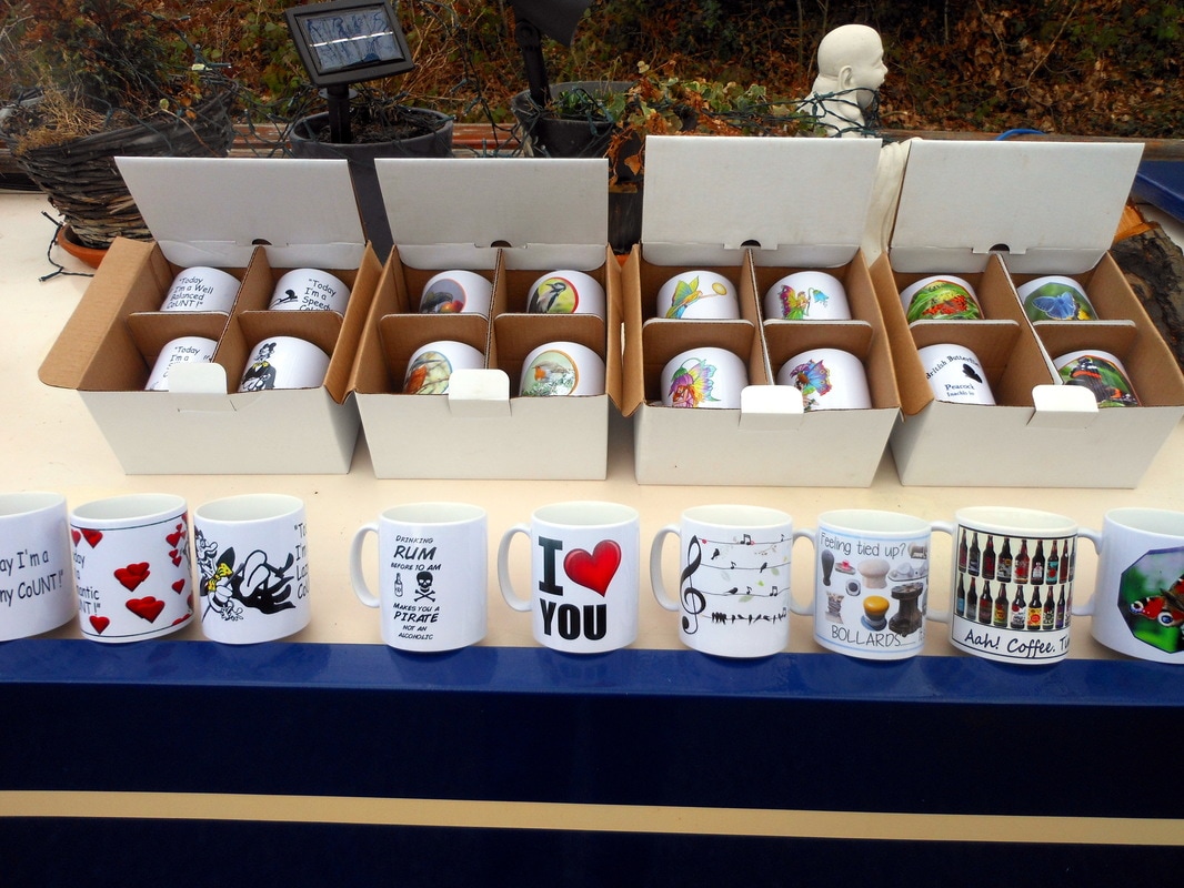 Analysing their sales Colin says they have produced lots of mugs for boaters, featuring their favourite picture of their boat and adding design touches to enhance the image.