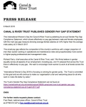 March 2018 - A Gender Pay Gap statement issued on 8 March shows that the Canal & River Trust is still operating a bonus culture, writes Allan Richards.