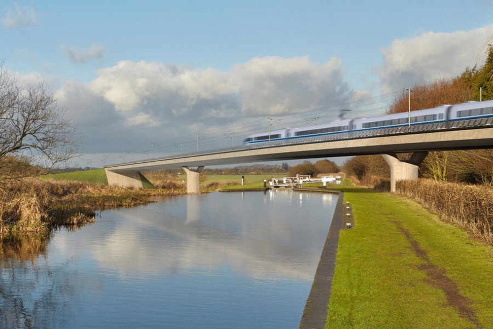 Photo: An artist's impression of the HS2 crossing the canal - Except that there is a narrow lock - and that bridge has been drawn incredibly tiny!