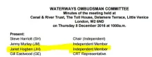 May 2017 - Allan Richards has had to use Freedom of Information requests to see minutes of a Waterways Ombudsman Committee Meeting back in December, which, he reports, show just how hard C&RT tries to maintain the pretence that this committee is independent.