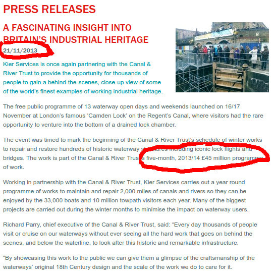 October 2017 - The Canal & River Trust press release boasted in capital letters 'CHARITY SPENDS £38MILLION TO KEEP YOUR MUCH-LOVED WATERWAYS FLOWING'. Just in case you hadn't got the point it goes on, in part: “This November will see the start of a five-month-long programme of repairs to England and Wales’ waterways, as the charity, Canal & River Trust, spends £38million to restore some of the nation’s best loved sites.” Anyone unaware of the context of C&RT's always decreasing maintenance spend would think the Trust wonderfully successful, but Allan Richards has been investigating C&RT's decreasing winter works budget.