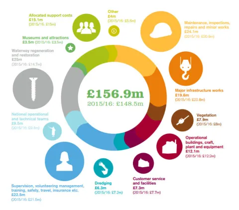 Despite a substantial growth in income and and the value of its investments, the Trust's yearly spending on waterways maintenance is not increasing. Indeed, it actually spent £1m less less on directly maintaining its waterways in 2015/16 than in the previous year.