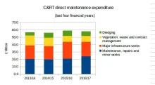 In total, C&RT spent £1m less last year on the four 'direct maintenance' categories, than it did the previous year. As will be seen from the chart spend has been fairly static over the last four years being within a few hundred thousand of £57m.